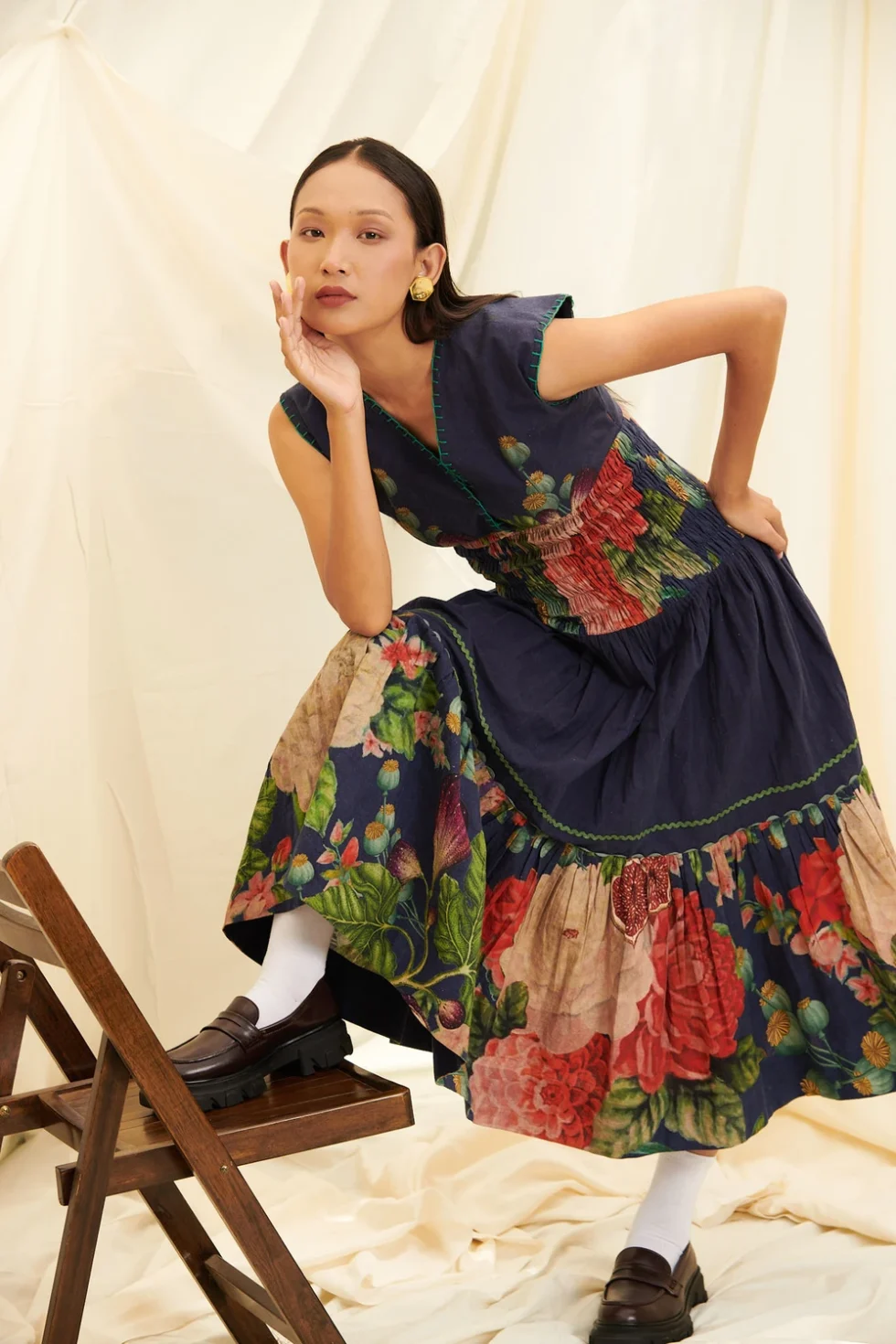 Introducing our Poppy Bloom Print Shirring Dress, a captivating piece that embodies elegance and style. This calf-length dress features shirring over the waistline, creating a flattering silhouette. With a chic V-neck and sleeveless design, it exudes sophistication. The all-over print adds a touch of charm, making it perfect for any occasion.
