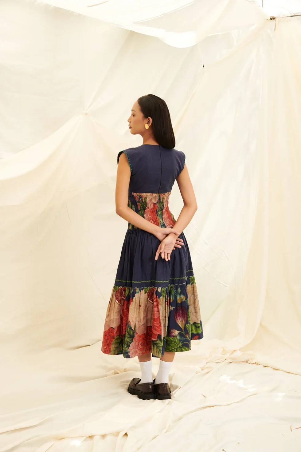 Poppy Bloom Shirring Dress – Thithilii – Blue