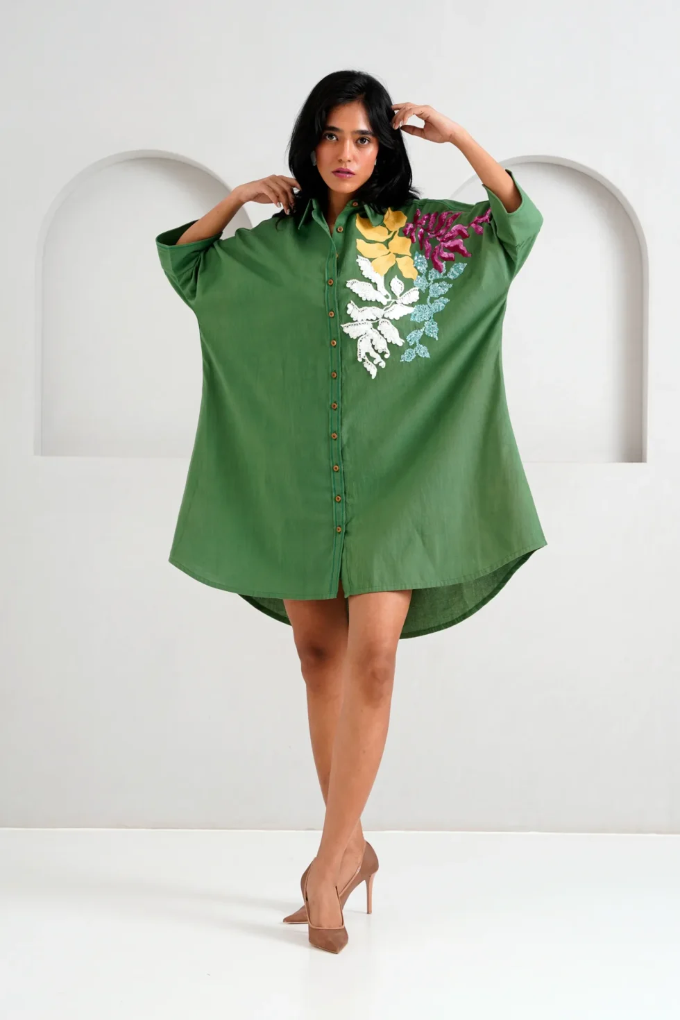 Unleash your style with the Pine Green Suri – Volume Shirt Dress. Its roomy, versatile design gives you the freedom to move with ease, making it perfect for any occasion. Embrace the Pine Green and effortlessly stand out in this easy-to-wear dress.